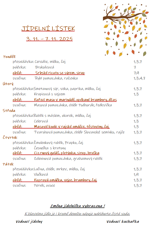 Jídelníček: